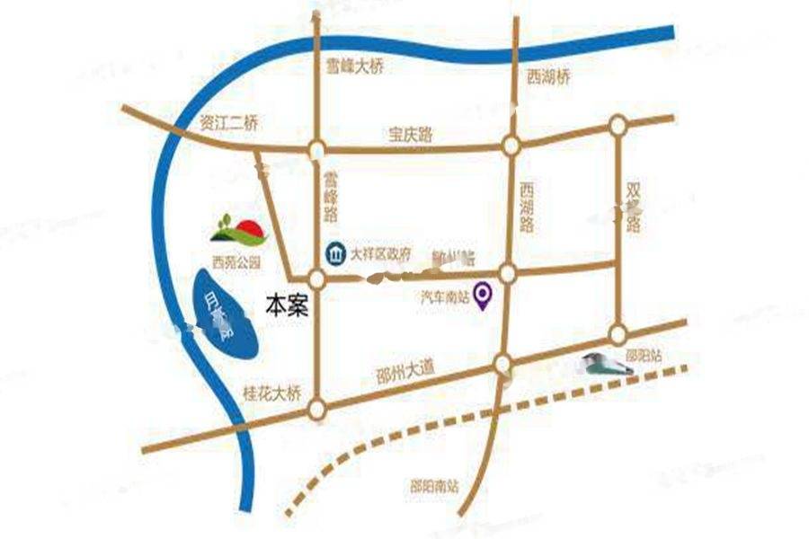 交通四通八达,雪峰路、敏州西路城市干道零距离环绕项目;南接邵州大道;桂花大桥;东至西湖路;三纵两横立体交通,3分钟至邵阳汽车南站、5分钟至邵阳火车站、5分钟至邵阳城市中心、10分钟至邵阳南高速入口;便利交通,掌握城市的核心动脉。
