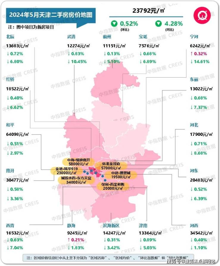 图:2024年5月天津各市辖区二手住宅挂牌均价及环同比数据来源:中指数据CREIS(点击查看)市场监测:https://www.cih-index.com/