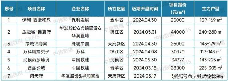 表:2024年5月成都典型新房项目数据来源:中指数据CREIS(点击查看)市场监测:https://www.cih-index.com/