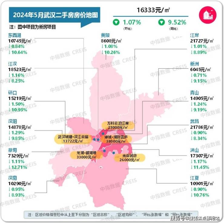 图:2024年5月武汉各市辖区二手住宅挂牌均价及环同比数据来源:中指数据CREIS(点击查看)市场监测:https://www.cih-index.com/