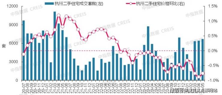 图:2020年7月至2024年5月杭州二手住宅成交套数及二手住宅价格环比走势数据来源:中指数据CREIS(点击查看)市场监测:https://www.cih-index.com/