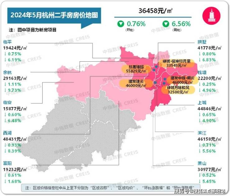 图:2024年5月杭州各市辖区二手住宅挂牌均价及环同比数据来源:中指数据CREIS(点击查看)市场监测:https://www.cih-index.com/