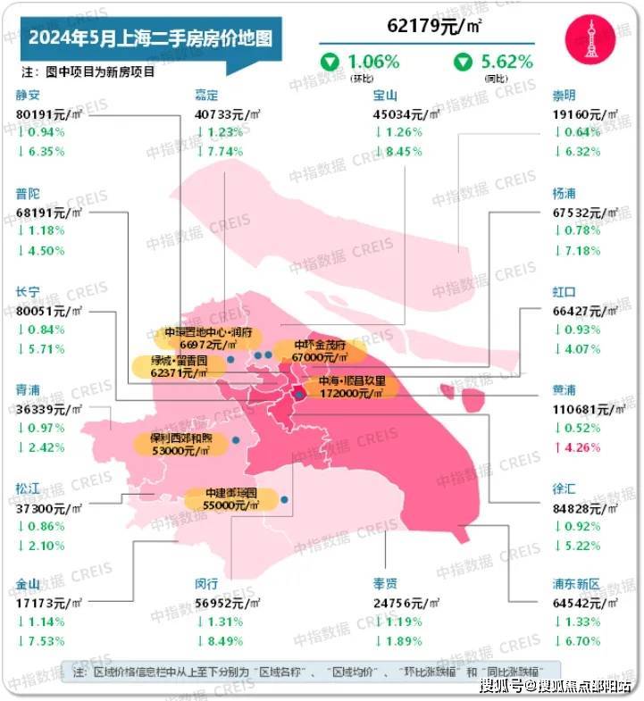图:2024年5月上海各市辖区二手住宅挂牌均价及环同比数据来源:中指数据CREIS(点击查看)市场监测:https://www.cih-index.com/