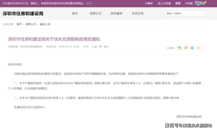 2月7日,深圳市住房和建设局发布关于优化住房限购政策的通知。