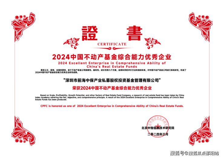 中保产业基金多年来行稳致远,深耕不动产行业投资,在不动产行业发展新形势下,发力不动产行业新赛道,打造不动产业务新模式,综合实力不断提升,荣登2024年“中国不动产基金综合能力优秀企业”,这已是中保产业基金连续多年获此殊荣。