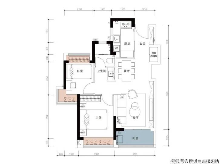 此户型最为吸引人的是阳台的尺寸,在片区几乎难再有的约5.6米阔绰景观阳台设计,开启生活中的无限想象,主人房带大飘窗,诗意生活就在眼前。