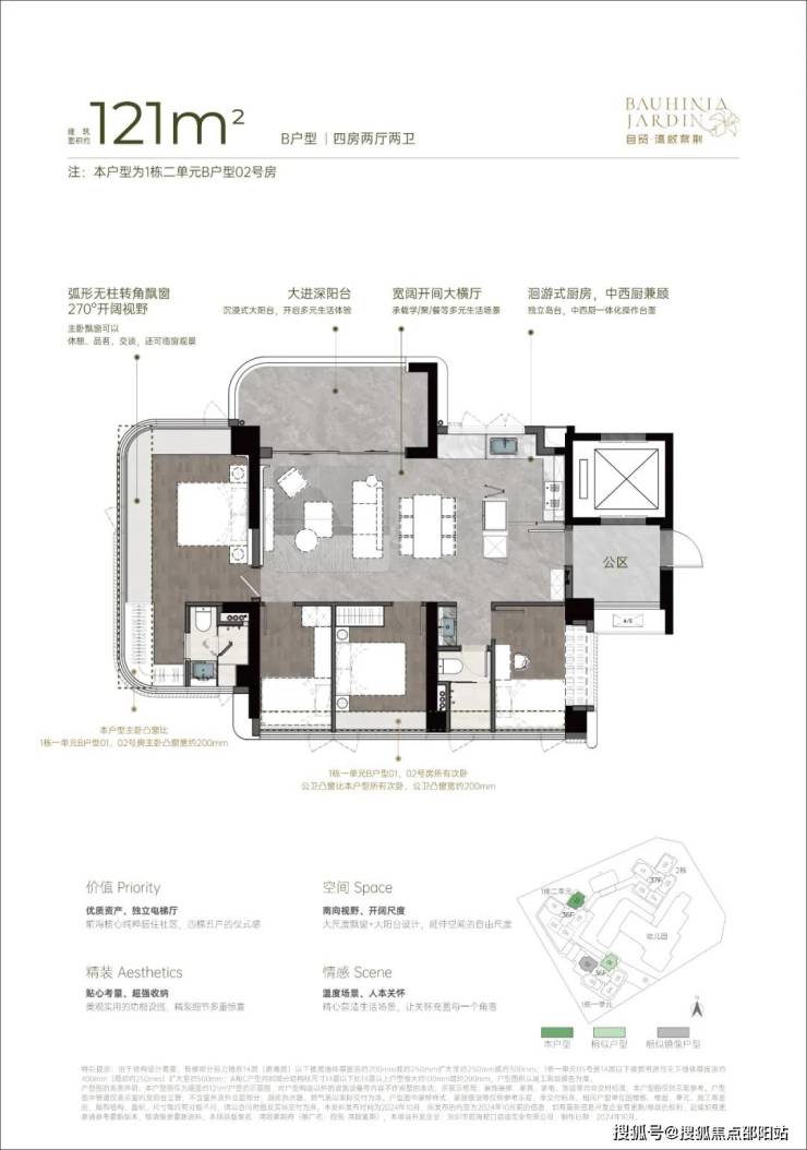 双龙抱珠户型,整个户型非常通透。书房分布于客厅另一侧,难得的双面采光+270°景观视野。主卧南北通透,景观面开阔。