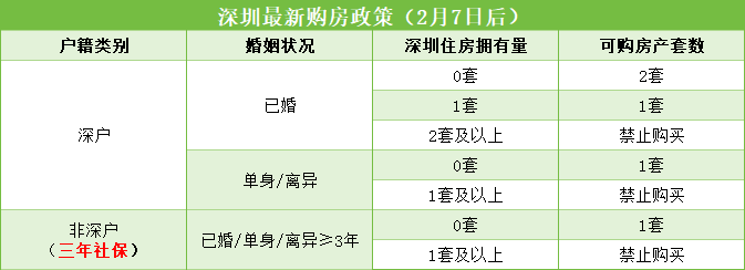更直白的说就是深户家庭限购2套住宅,深户单身限购住宅1套,不用看社保,直接深户就可以买。非深户5年社保改3年社保,限购一套。