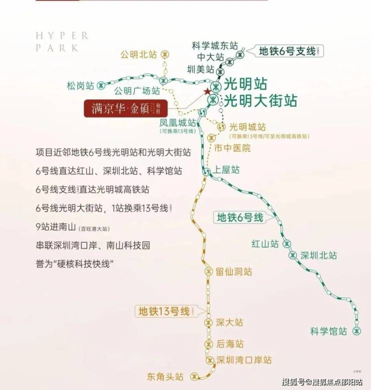 项目距离6号地铁线“光明站”约800米,步行需要11分钟左右,2站到凤凰城站,可以换乘13号线,4站到光明城站,这里可以换乘光明城高铁站/6号地铁线,6站到宝安上屋站,11站到南山西丽留仙洞,14站南山高新园,18站到后海。