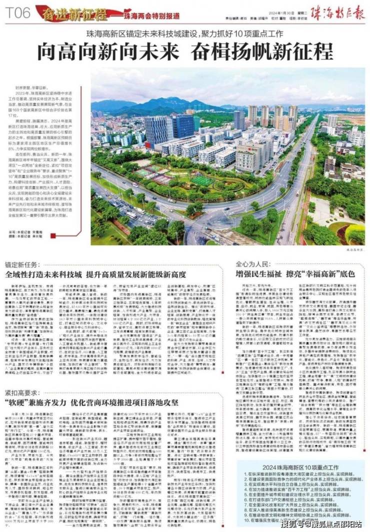 2024 珠海高新区 10 项重点工作: