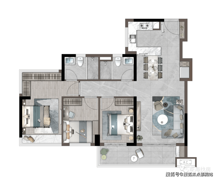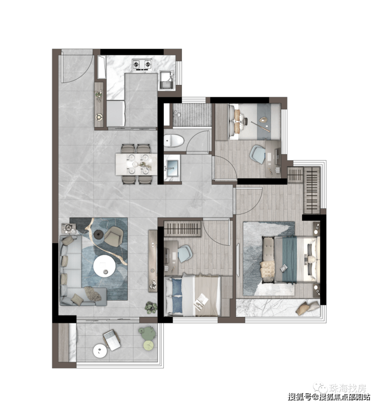 「建筑面积约76㎡丨三房两厅一卫」