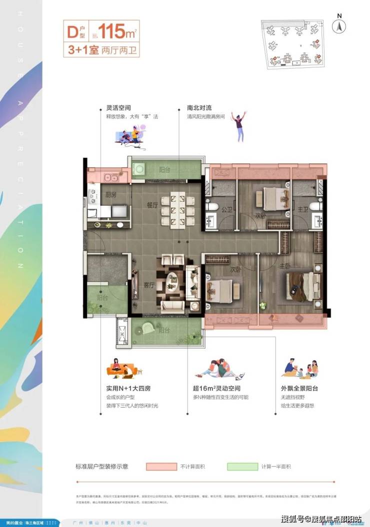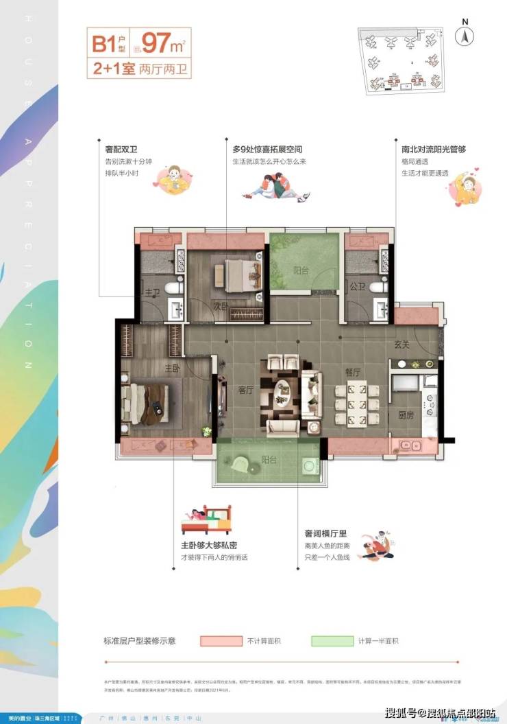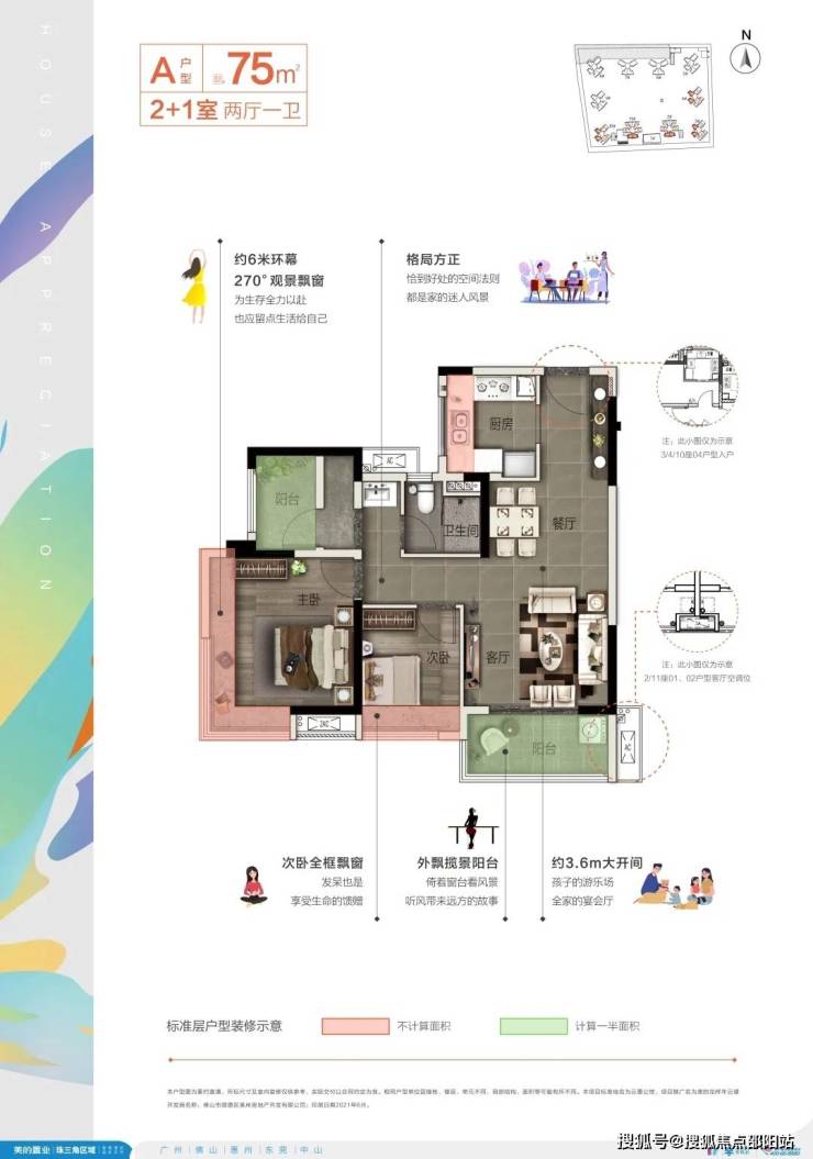 户户全框飘窗,整体外飘阳台设计,零遮挡视野,北滘唯一75㎡三房、102 ㎡四房,极致创新户型产品,搭配96/97㎡大三房、115 ㎡大四房精品户型,当属北滘城芯最高性价比楼盘。