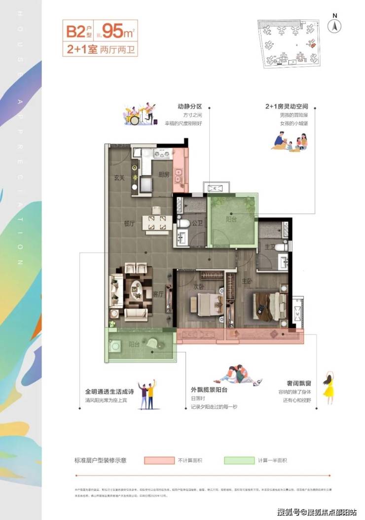 项目采用围合式布局,约2.5容积率,楼间距最宽达144米,92%南向户型,阳光清风入室,打造有温度的社区人居空间。