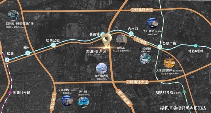 3地铁动脉,约300米地铁6号线薯田埔站、两站接驳13号线(在建)、三站换乘11号线,2干道主脉,光明经济发展轴松白路在侧,贯穿全区;约1km瞬达南光高速入口,直达南山。