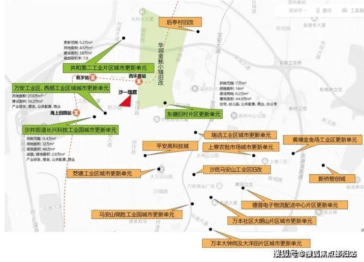 区域内超过29个旧改项目,约400万㎡城市更新,超千亿投资,众多品牌进驻。本项目毗邻华润百万级旧改——金蚝小镇,该项目规划用地范围约3平方公里,相当于3个沙井海岸城体量,4个南山华润城体量,将打造粤港澳大湾区的海洋文化地标,成为深圳西部城市中心