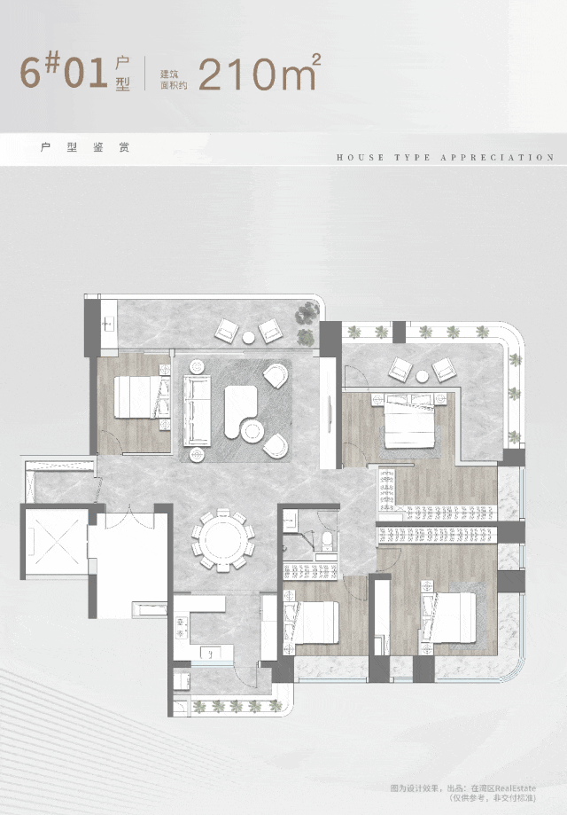 基于港湾豪宅的定位,拟用大面落地玻璃的设计,更大程度将港湾、珠江美景拉进室内;更对建筑形体进行裁剪,使每栋建筑立面呈现出丰富层次变化的同时,又完美撑起江岸的天际线。