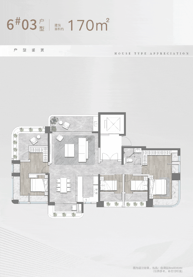 在楼栋排布上,基于港湾城市底盘,项目又高定一座「0线」望江奢宅。 在港湾社区骨架之上,项目为了发挥地块最大优势:三江交汇,约700米江景;结合整个地块地形,让所有的住宅呈现「龙型环绕,一字排开」布局,环绕整个C型港湾。
