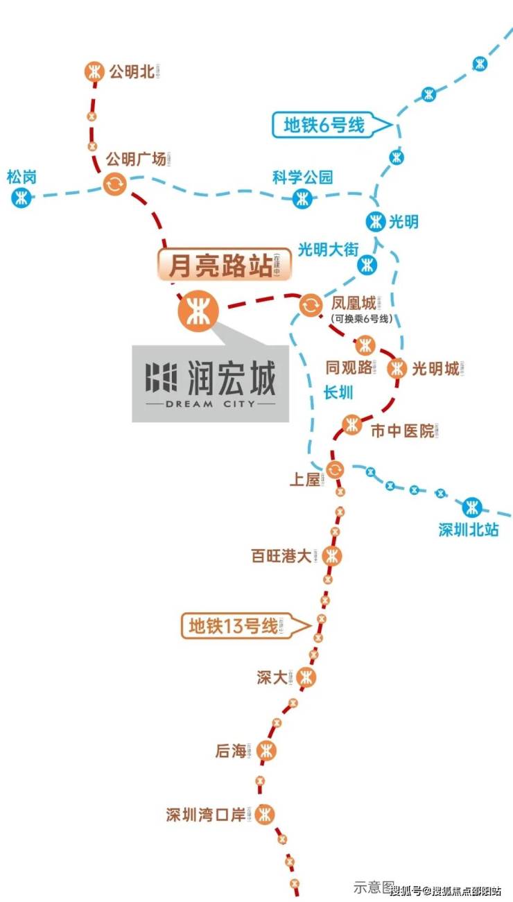 润宏城一期住宅,依托深圳“黄金科创线”地铁13号线月亮路站*,未来从月亮路站出发,仅需1站即达凤凰城站,9站直抵南山(百旺港大站),全线贯穿光明、南山、宝安三区,高效接驳全城。*在建中,该规划属于片区更新单元范围内。