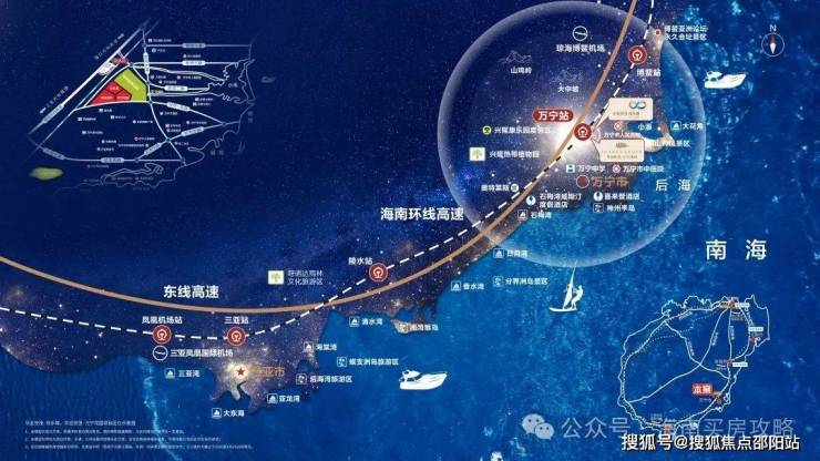 项目毗邻万宁高铁站,距离汽车站约3公里,距离环岛高速入口约2.3公里,立体交通路网,擎引高效便捷出行,接驳岛内外无界生活。