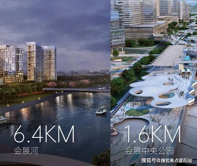 集休闲、家庭、娱乐、美食于一体,为繁忙的都市生活提供舒适的休闲体验;以超300万㎡总体量,集合约160万㎡国际会展中心及约154万㎡包括国际体验式商业中心、星级酒店群、高端公寓群、会展商务基地、会展公园、会展河等复合功能业态会展综合配套。
