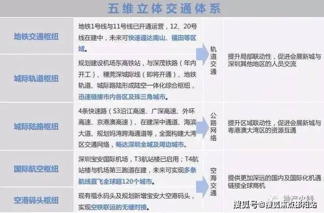 • 航空枢纽:深圳宝安国际机场,T3航站楼已启用;T4航站楼与机场第三跑道在建,未来可实现多条航线直飞全球超120个城市。