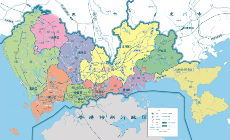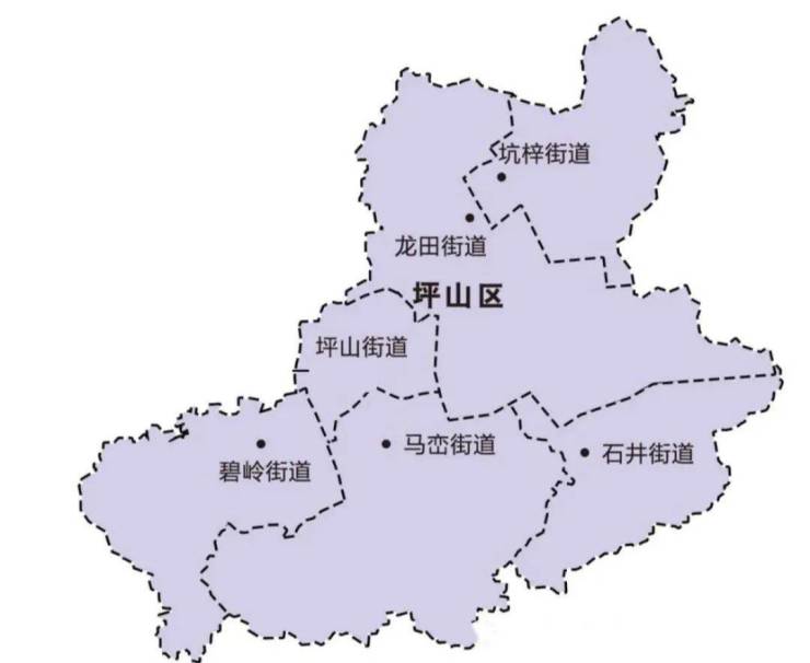 下面是深圳整体的区域划分图以及坪山最新的街道划分图: