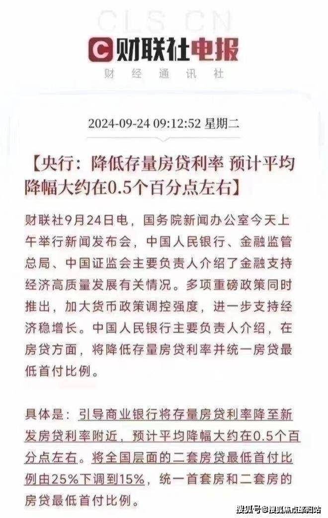 (3)降低存量房贷利率,平均降幅0.5%;引导商业银行将存量房贷利率降至新发房贷利率附近!