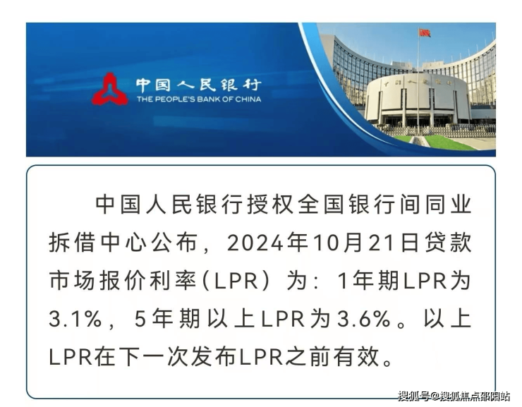 2024年10月21日贷款市场报价利率(LPR)为:1年期LPR为3.1%,5年期以上LPR为3.6%。