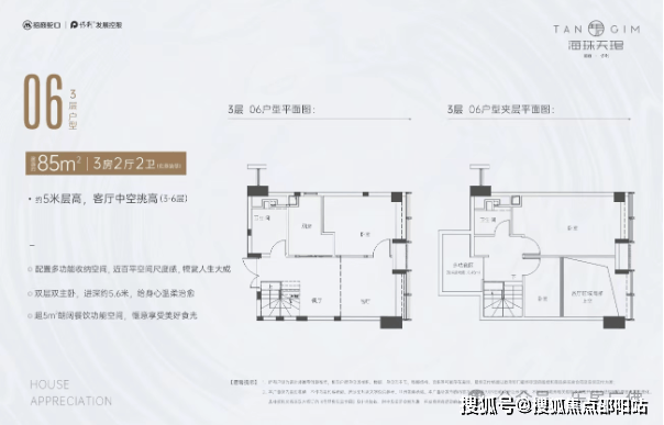 招商保利·海珠天珺3-6层LOFT产品层高就达到5米,7-10层LOFT产品层高达到4.5米,居住空间明朗大气。