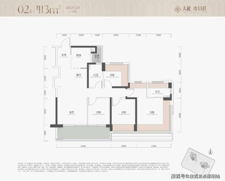 该户型同样为正4房2厅2卫、具备灵活性,亮点在于整体格局更方正,全屋卧室带飘窗+长约6.3米的大阳台,空间尺度感Max!