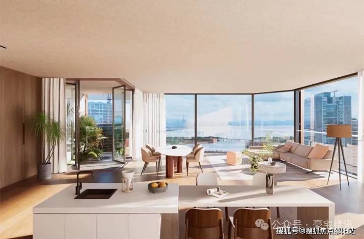 超高层观景面采用落地玻璃,深圳湾视野开阔,无需阳台即可观赏海景。