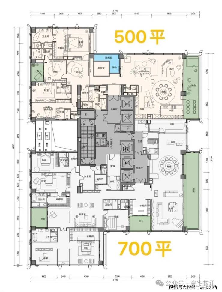 超高区(58层起,200米以上):约500-700㎡顶级大平层。