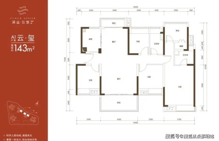 143㎡的4房2厅2卫,折后总价488万-528万/套,单价3.41-369万/㎡。