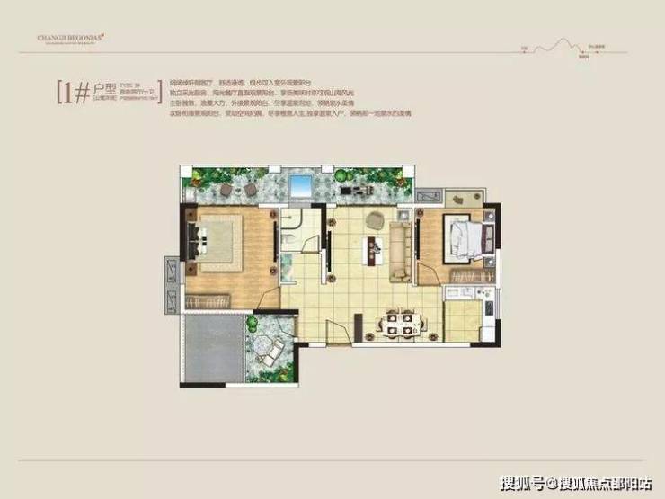 以下是1#户型,建筑面积为100㎡的2室2厅1卫1厨的简析: