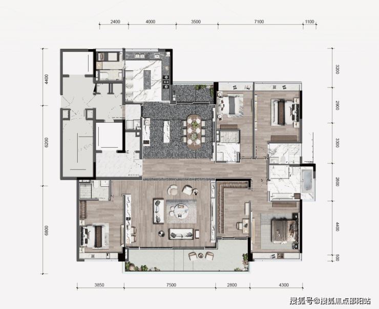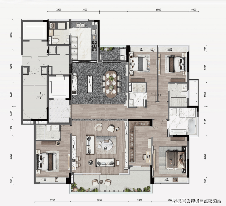 臻颐府的户型设计注重舒适性与实用性,尤其是高层设计和大面积空间的使用,使得每个细节都更显奢华。以265㎡的热销户型为例,采用南北对流设计,四开间朝南,采光效果极佳。每个单元配有3.5米的层高和双阳台设计,约9米的南向景观阳台带来极致视野。此外,290㎡的楼王户型更是全城稀缺,约80㎡的客餐厅、45㎡的主卧和奢华的高层视野,完美诠释了豪宅应有的尺度和气度。