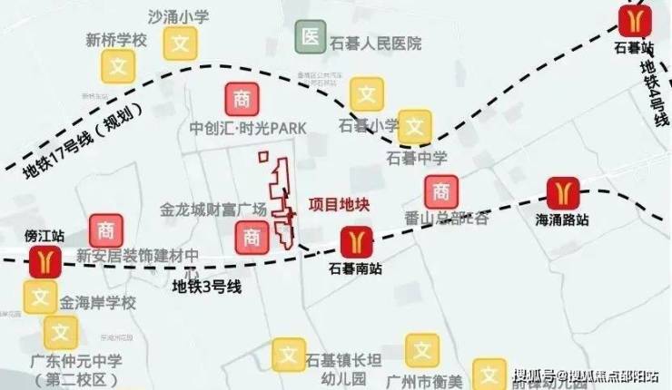 距3号线的石基南站约500米,2站番禺广场;通过3号线无需换乘直达珠江新城,无缝对接18/22号线,实现3站万博CBD,4站广州南、琶洲CBD,5站珠江新城,半小时链接市中心,一小时畅行湾区。