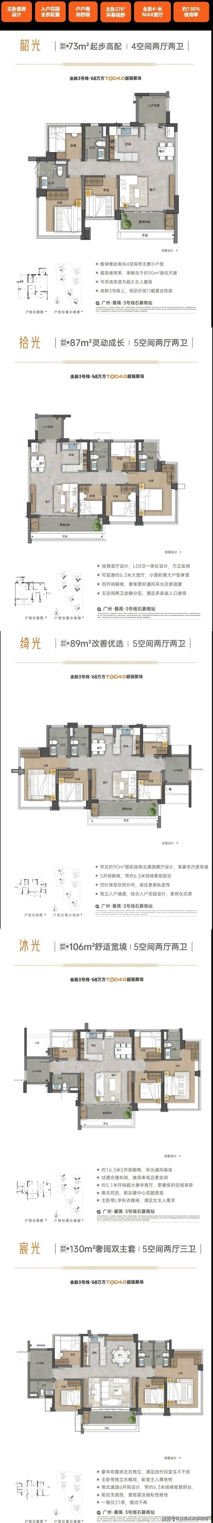 户型面积:建面约73-130㎡全南向4/5空间两厅两卫
