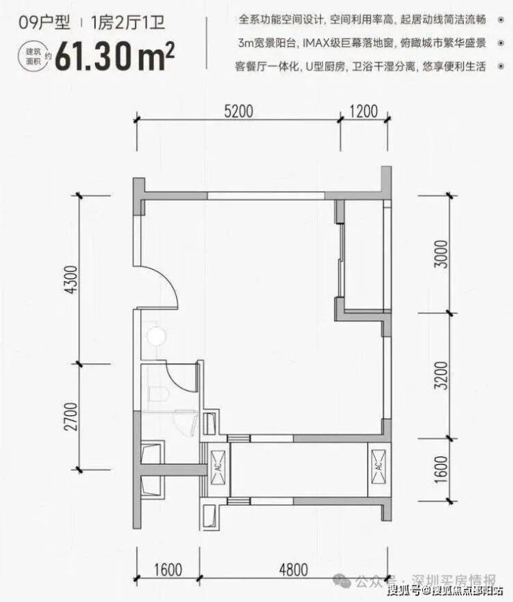 主力户型分析:项目主力产品涵盖建面约50-300㎡的1-4房,全系产品采用精装交付,由国际设计团队主理,强调功能性与景观视野。其中,约50-60㎡户型为1房1卫,适合创客、投资客或企业高管;约70-100㎡户型为2-3房1-2卫,空间布局方正,满足小家庭或企业人才需求;约120-150㎡户型为3-4房2卫,采用横厅设计,连接观景阳台;约200-300㎡户型为4-5房3卫的楼王或企业公馆单位,拥有更开阔视野及商务配置。