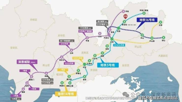 项目距离3号地铁东延线最近的“坪西站”以及“新生站”都在1.5公里左右,还有深惠城际“坪地站”,可以乘坐3号线坐到低碳城站换乘,步行约300米,该线路未来1站到龙城、2站大运北、6站到深圳北、7站到西丽、10站速达前海。深惠城际预计2026年开通,时速达160公里,到时候去哪都很方便、快速。