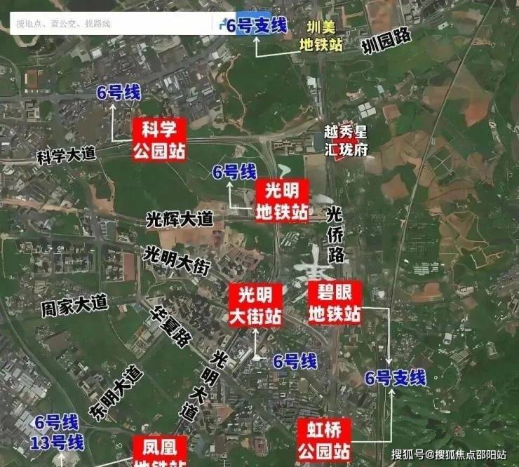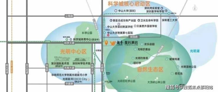 项目位于光明区新湖街道光侨路与科学大道交汇处东南侧,地处光明中心区板块。西北侧与科学公园北翼相邻,东南侧则是充满欢乐的光明欢乐田园,北侧靠近中山大学深圳校区及其附属第七医院,南面距离光明高铁站仅4.8公里。