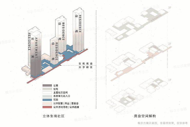 建筑规划:5栋超高层塔楼(4栋住宅+1栋公寓),高度分别为150米、200米、200米、240米(住宅)及250米(公寓)