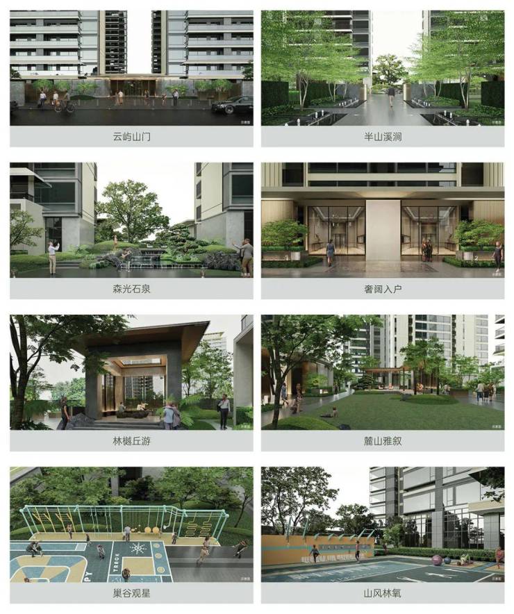 项目园林以“一轴八苑”的布局打造,与云山互为呼应。