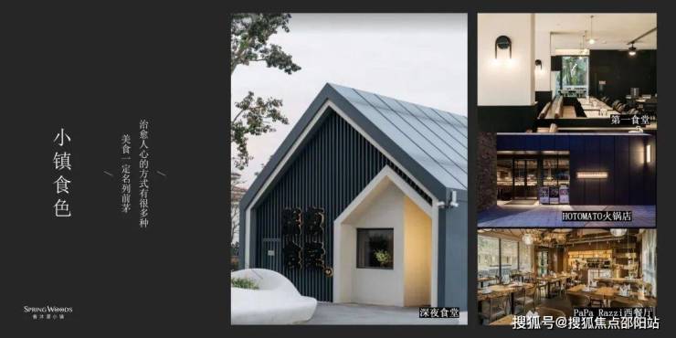 小镇自建特色美食体系,拥有业主第一食堂、莫斯咖啡、火锅店、泰餐厅、西餐厅、烤吧、深夜食堂、居酒屋、冰淇淋店等,为每人找寻地道家乡味。