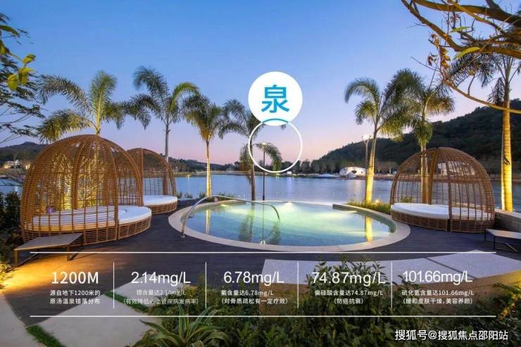 小镇温泉取自地下1200米处天然温泉,出水温度49度。泉质属重碳酸根铁温泉,被养生专家誉为“气血之汤”,媲美日本三大古泉有马温泉“黄金汤”。温泉富含锶、氟、偏硅酸、硫磺,锶对心血管和肠胃消化系统有很好的疗效,氟对骨质疏松和关节炎有很好的疗效,偏硅酸对心血管和皮肤有很好的疗效,硫磺消毒杀菌缓解皮肤干燥,被称之为壮骨汤、美容汤。同时温泉还能防癌抗衰老。
