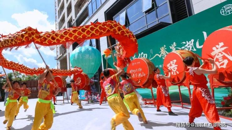 活动伊始,激昂澎湃的鼓点, 祥狮跃动、金龙翻舞,迅速点燃营销中心与夏日湖山生活节的现场氛围,更引燃了现场嘉宾们的热情。