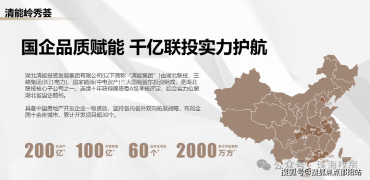 清能集团,是总资产规模达3000亿湖北联投旗下的核心子公司之一,具备中国房地产开发企业一级资质,连续十年获得国资委A级考核评定,实力超群。26载岁月,清能集团积累深厚,累计开发标杆项目超30个。