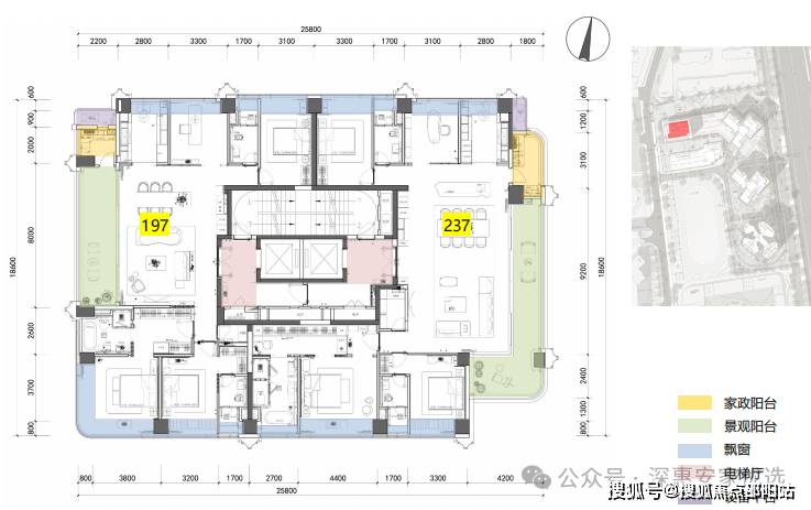 197㎡阳台达到8米,237㎡阳台达到11.8米,更大尺度保证采通风和视野;