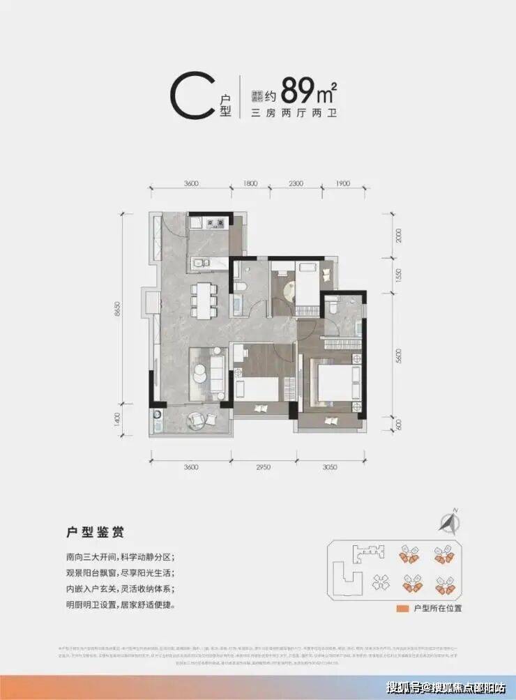 面积:89㎡3房108-117㎡4房2卫