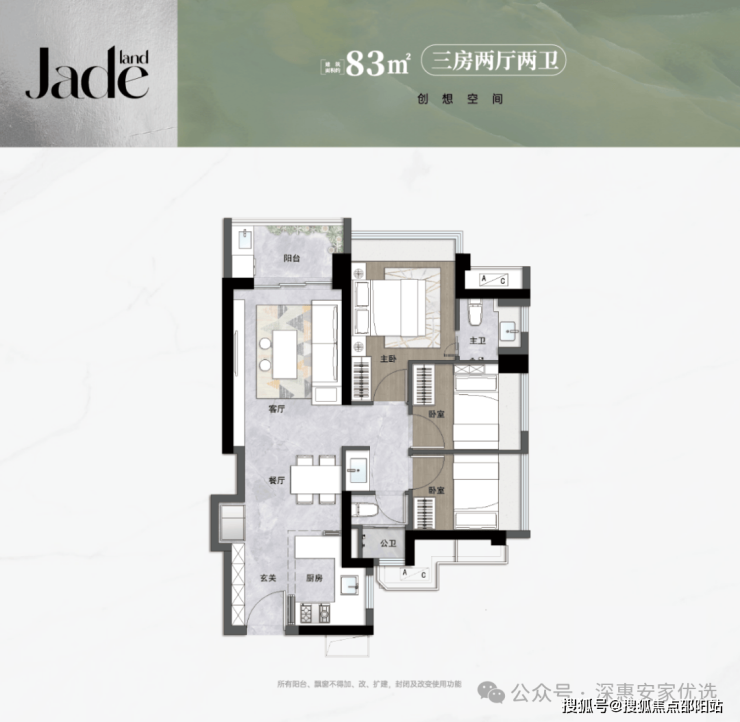 83㎡三房两卫:总价373万起,龙华起步面积最小的三房户型,主卫无淋浴区是硬伤,但预算有限的小家庭“上车”神器-