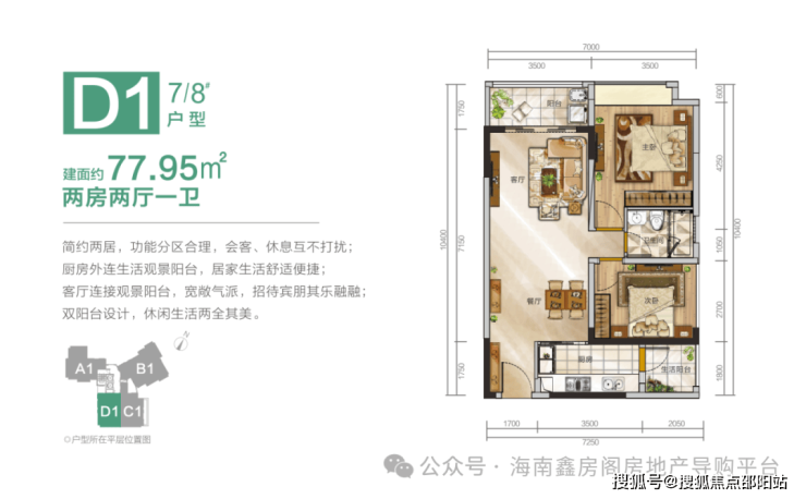 D1户型(7#8#):两房两厅